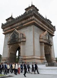 【ビエンチャン共同】ラオスを公式訪問中の天皇、皇后両陛下の長女愛子さまは18日午前(日本時間18日午後)、首都ビエンチャン中心部で、ラオスを代表する建築物の一つ、凱旋門(パトゥーサイ)を視察された。