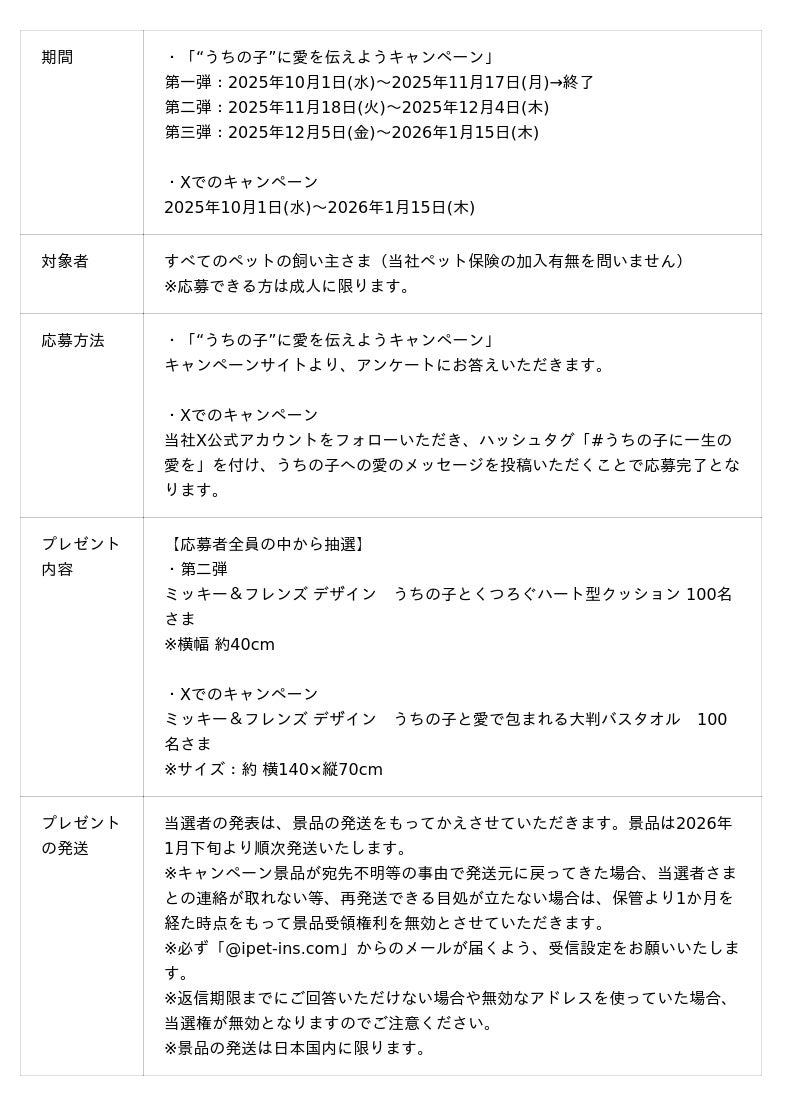 ※詳細は、「“うちの子”に愛を伝えようキャンペーン」は特設サイト、Xでのキャンペーンは当社の公式Xアカウント(@IPET__INS)からご確認ください。