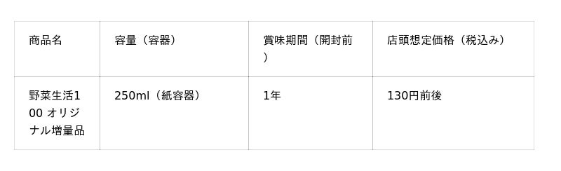カゴメ株式会社(社長:山口聡、本社:愛知県名古屋市)は、発売30周年を迎える「野菜生活100」ブランドから感謝の気持ちを込めた「野菜生活100オリジナル増量品」を、2025年11月18日(火)より、全国で数量限定発売します(在庫がなくなり次第、販売終了)。