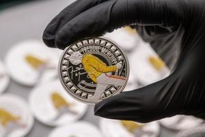 フレディ・マーキュリーの記念硬貨(英国王立造幣局提供・AP=共同)
