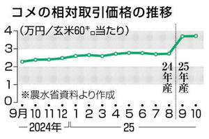 新米卸値、10月も最高 前年比1.6倍 小売価格高止まり懸念