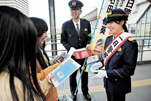 国スポライフルV済美高の石田さん 一日署長 詐欺撲滅 狙い撃ち 岐阜駅でパトロール、防犯訴え
