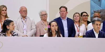 【ベレン共同】化石燃料からの脱却を訴える英国やドイツ、コロンビア、マーシャル諸島の代表らが18日、国連気候変動枠組み条約第30回締約国会議(COP30)の会場で記者会見し、多くの国が結束して脱却に向けた工程表を取りまとめるよう訴えた。国際環境団体によると、18日時点で約80の国が賛同しているという。