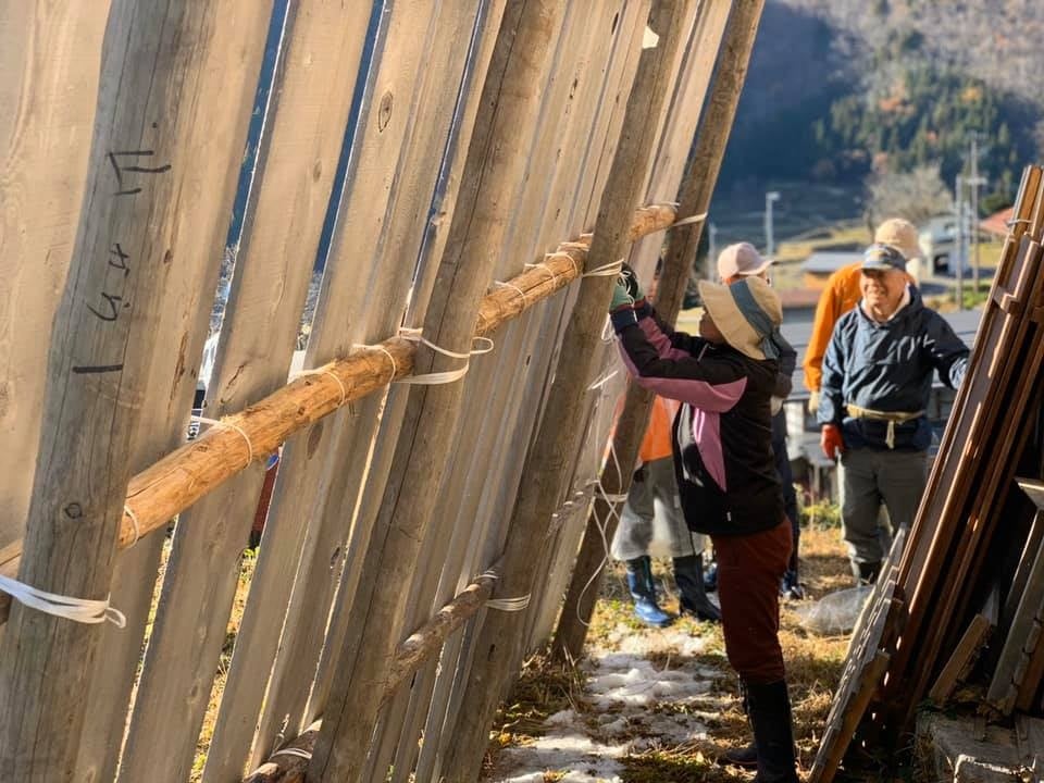 ・冬支度 獣害防止柵の撤去・土蔵の雪囲い設置
