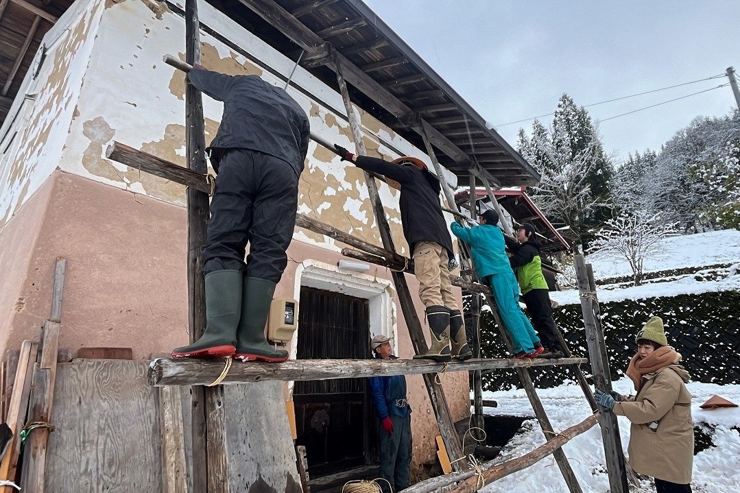 ・民家より多い板倉で有名な種蔵において、唯一存在する土蔵の雪囲いを設置します。