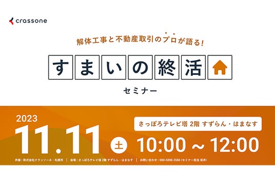 札幌市では連携協定の締結を受けて、2023年11月11日に「すまいの終活セミナー」を実施しました。会場とオンラインのハイブリット開催で、当社からは家の解体について、住友不動産販売社より土地の売却について、市の職員からは市の制度について解説を行いました。