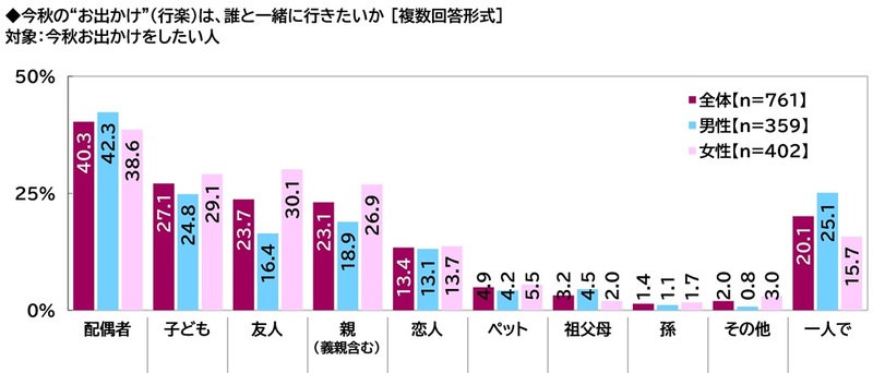 今秋一緒にお出かけしたい人 1位「配偶者」2位「子ども」3位「友人」
