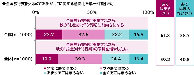 「全国旅行支援が実施されたら、秋のお出かけの予算を増やしたい」59%