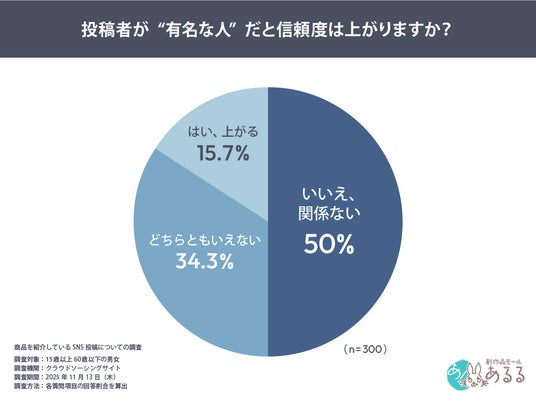 調査の結果、SNSユーザーの50%は「投稿者が有名でも信頼度は変わらない」と回答。