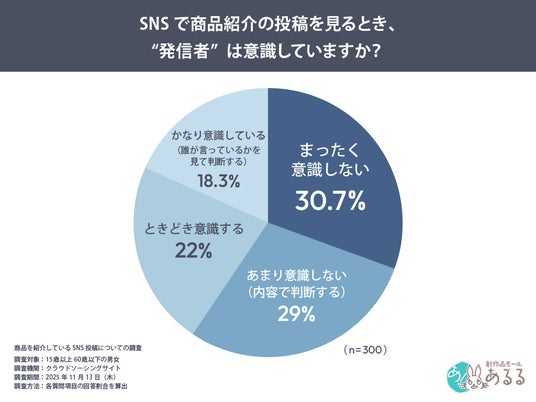 SNSで商品紹介を見る際、発信者を意識するか尋ねたところ、