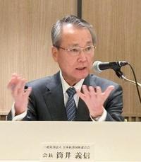 経団連の筒井義信会長は19日、高市早苗首相の台湾有事に関する国会答弁を巡り中国の反発が強まっていることに関し「人の交流を含めた対中ビジネスへの影響が拡大することを非常に憂慮している」と述べた。両国政府が対話を通じた意思疎通をするよう求めた。