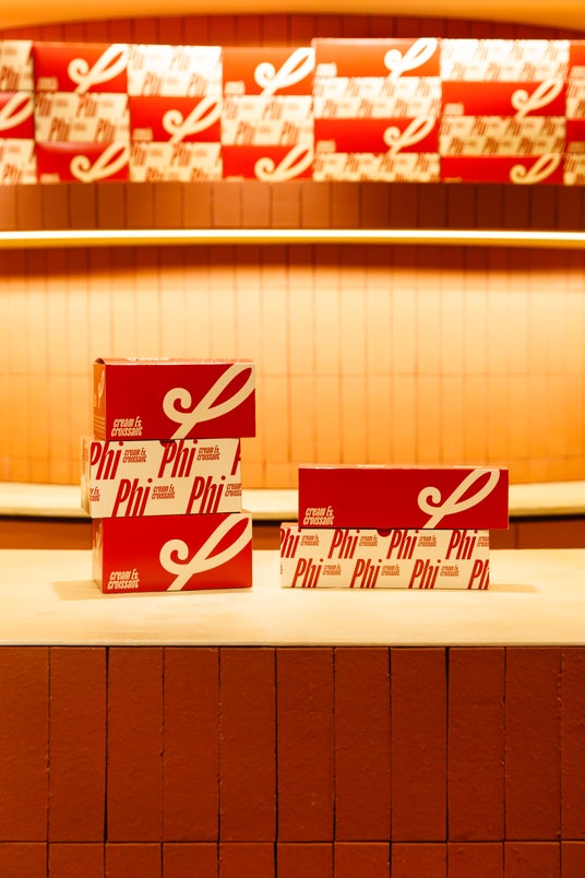 ロゴデザイン、テイクアウトボックスやコーンカップスリーブ等の包材デザインは、Et同様にLogramの阿南圭吾氏が手がけます。クロワッサンの中にクリームが注入されるようなイメージをファイの記号「φ」に反映し、先端がカーブを描き、斜めに伸びたデザインが編み出されました。フォントは、絞り袋の金口から流れ出る、クリームの美しくシャープな波線を表し、「&」を「Et」にすることで、姉妹ブランドのEtのエッセンスを表現しています。