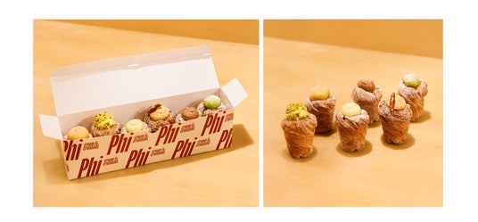 「Phi cream & croissant」は、そんな“調和と美”をコンセプトに誕生しました。クリームとクロワッサンが生み出す圧倒的に美しいビジュアルと、一口で広がる新鮮さと懐かしさ。その両方を併せ持つ味わいを通じて、いつの時代も変わらない「普遍的かつ革新的な喜び」を届けるブランドでありたいという願いを込めています。