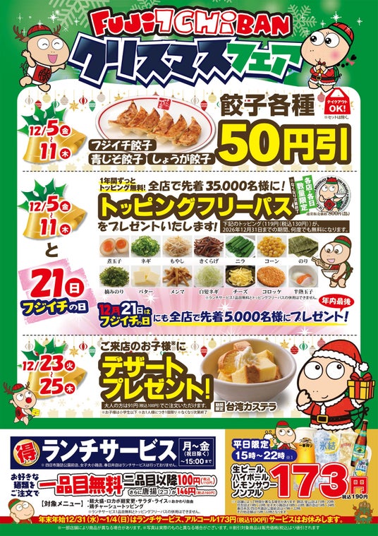 12/5~開催「クリスマスフェア」と平日お得な藤一番のサービス