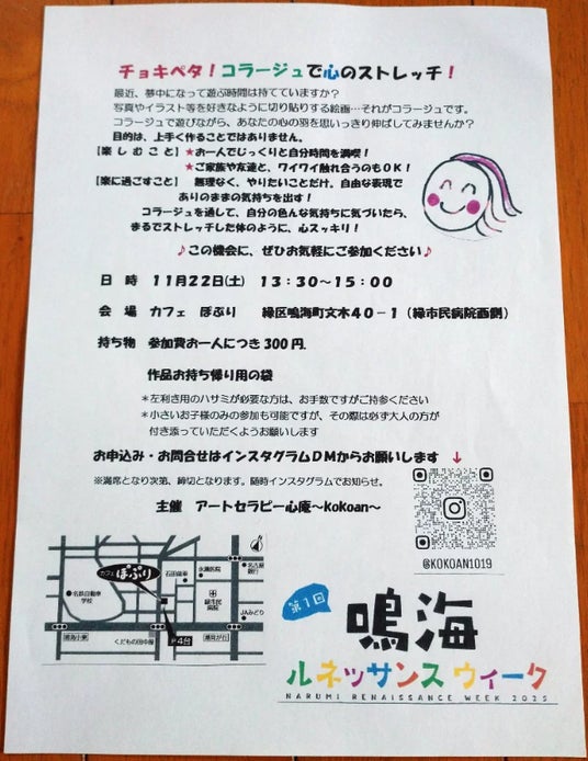 ◆フラッグ20「チェキペタ!コラージュで心のストレッチ!」 アートセラピー心庵kokoan