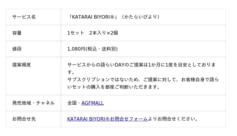 ■「KATARAI BIYORI(R)」商品概要