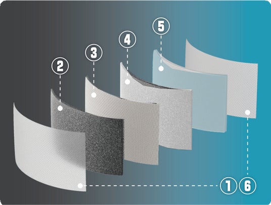 ※1.粒子状物質フィルター2.活性炭フィルター3.MB(メルトブローン)フィルター4.防湿フィルター5.湿潤フィルター6.粒子状物質フィルター