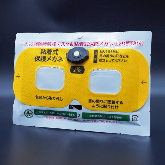 粘着式保護メガネ(LED照明付き)目を煙や粉、有毒ガスから守る保護メガネ。