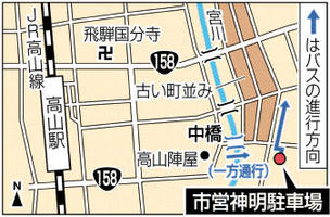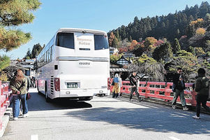 高山市の中橋、観光バス一方通行 来月から本格運用