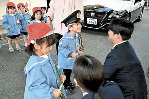 警官に感謝の手作りメダル 岐阜市の園児が岐阜中署訪問