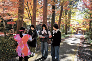 大矢田神社彩る紅葉 児童が手作りパンフ配布
