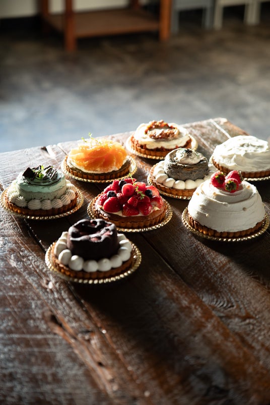 当初から親しまれる「りんごとほうじ茶のタルト」、月見だんごをあしらった「みたらしタルト」など、遊び心あふれるビジュアルと季節感を楽しめるタルトを取り揃えました。すべて 12cm の小ぶりサイズで作れるため、ひとりで楽しむのはもちろん、家族や友人と分け合うのにも最適です。