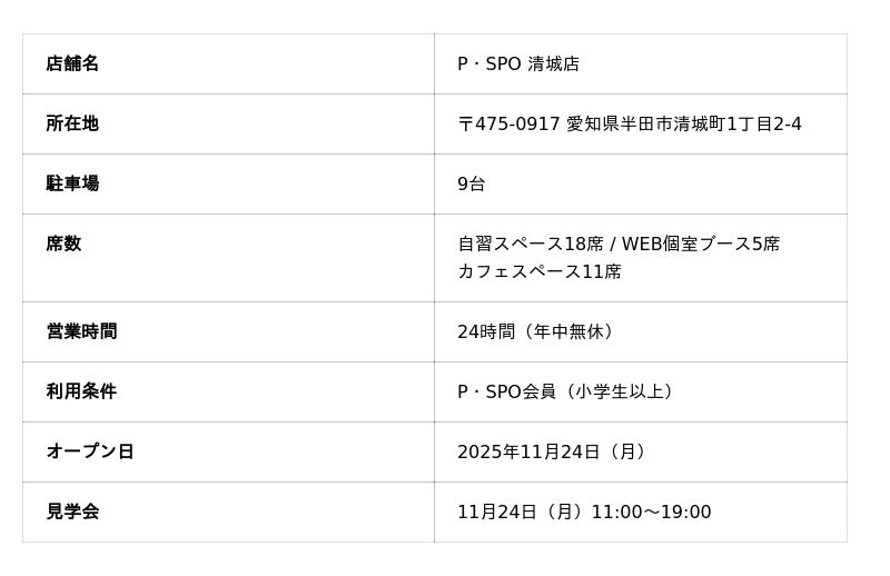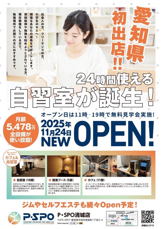 愛媛県松山市に本社を置く三福ホールディングスが運営するマルチフィットネスジムブランド「P・SPO(ピースポ)」は、フランチャイズ加盟店である株式会社チタコーポレーション(本社:愛知県半田市)により、愛知県内初となる新店舗「P・SPO 清城店」2025年11月24日にオープンすることをお知らせいたします。