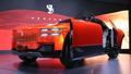 トヨタは、センチュリーのオレンジ色クーペの試作車を披露。輪島塗など伝統工芸品も使っており「日本の誇りを世界に発信したい」(担当者)。