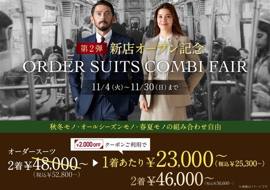 本格オーダースーツが19,000円(税込20,900円)「生活応援フェア」開催!