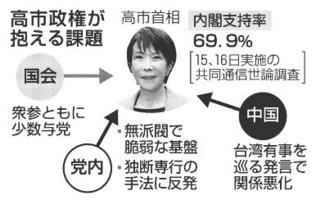 首相、保守色を前面 高市政権1ヵ月 高支持率維持 日中対立、世論の動向に神経