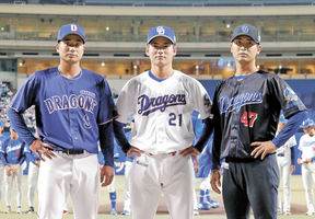 プロ野球 竜、新ユニホーム発表 ビジターの帽子ロゴ「D」に