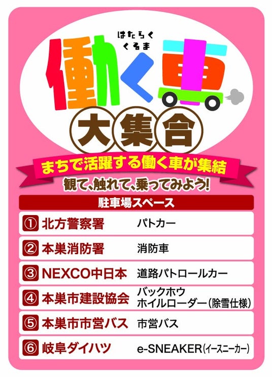 1.働く車が大集合!本巣市で活躍する“働く車”が勢ぞろい。