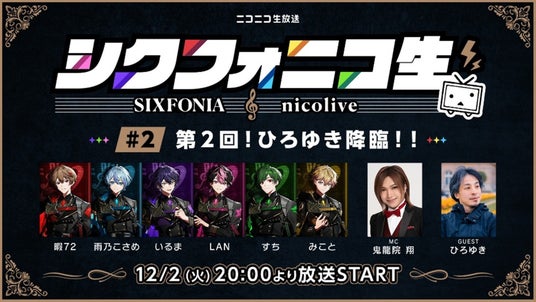 2.5次元タレントグループ「シクフォニ」が、ライブ配信サービス「ニコニコ生放送」にて、冠バラエティ番組「シクフォニコ生#2」を12月2日(火)20時より生配信します。MCは前回に続いて鬼龍院 翔さん(ゴールデンボンバー)が務め、今回のゲストとして実業家・ひろゆきさんがフランスからオンラインで生出演します。結成3周年を迎えた今年、シクフォニが放つ初の冠番組に、ネットカルチャーを象徴する存在のひろゆきさんが加わることで、これまでにない化学反応が期待されます。