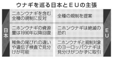 ウナギ全種規制 日米などが反対 ワシントン条約会議開幕