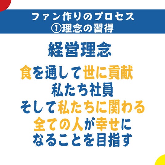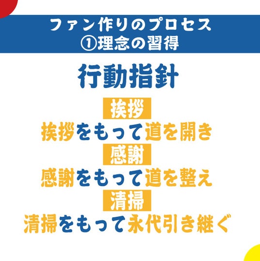 新時代グループでは、ファン作りの流れを以下の4段階で定義しています。1.理念の習得