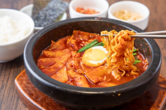 店舗名:コリアンキッチン シジャン、商品名:みそラッポギ定食、価格:1,480円(単品1,080円)、アツアツの一皿が、ますます旨辛に!
