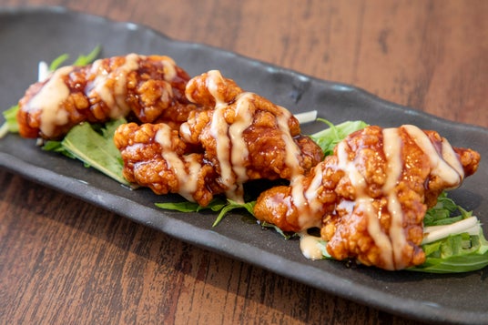 店舗名:ロンフーダイニング、商品名:味噌×もも肉 つけかけ無双からあげ、価格:3個528円・5個858円、味噌+油淋鶏+マヨの化学反応を体感して!