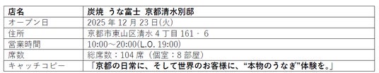 ミシュランガイドにも掲載された、名古屋発祥のうなぎ店『炭焼 うな富士』(運営:株式会社かぶらやグループ/本社:愛知県名古屋市/代表取締役社⾧:榎本 渉)は、創業30周年の節目に、京都・清水寺参道の五条坂に新店舗『炭焼 うな富士 京都清水別邸』をオープンいたします。古都の趣と職人技が織りなすうなぎ料理で、唯一無二の“幸腹体験”をご提供します。