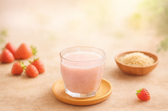 旬を過ぎたいちごを有効活用する取り組みから生まれた本商品は、フードロス削減に寄与するだけでなく、地域の資源を無駄なく活かす新しい食の提案として企画されました。アルコール0%の本格糀甘酒をベースに使用し、砂糖・保存料・着色料などの添加物を一切加えず、素材が持つ本来のやさしい甘みと爽やかな酸味を引き出した、身体にやさしい無添加の健康ドリンクです。小さなお子さまからご年配の方まで、幅広い年代が安心して楽しめる味わいに仕上げています。