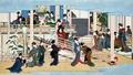 神奈川県箱根町の岡田美術館が収蔵してきた作品で、縦約2メートル、横約3・4メートル。東京・深川の料亭で遊女ら27人が中庭の雪を眺めたり、火鉢にあたったりする様子が描かれている。米国の美術館所蔵の「品川の月」「吉原の花」と共に「雪月花」3部作として知られてきた。
