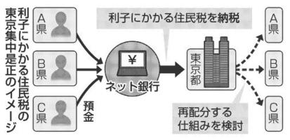 利子税収東京偏在を是正 政府与党 ネット銀普及で検討