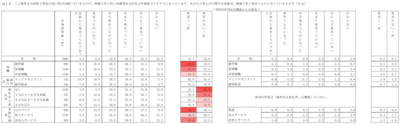 また、「経営層」「管理職層」「非管理職層」の役職別に加え、「ものづくり」「対人サービス」「非対人サービス」に対象者を再区分した業種別、さらに海外売上高比率別でも分析を行いました。