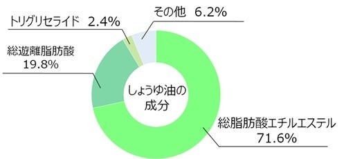 しょうゆ油の成分は、脂肪酸エチルエステルです。PHA生合成に従来使用されてきたい植物油脂(大豆油やパーム油)は、約97%以上がトリグリセライドであり、しょうゆ油と主要成分が異なります。今回の研究に用いたしょうゆ油の成分は以下の通りです。
