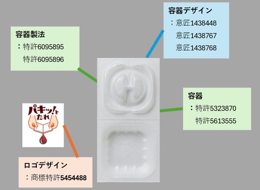 この容器が使用された「金のつぶ パキッ!とたれ とろっ豆」は、2012年の発売以来、幅広いお客様にご愛顧いただいており、今では年間3億食以上を誇る人気商品です。この容器は、特許権の他、容器デザインの意匠権、ロゴデザインについて商標を取得しており、特にデザイン性では高い評価を得ています。(「2012日本パッケージングコンテスト」において「経済産業大臣賞」受賞、「公益財団法人日本デザイン振興会」運営の「2012年度グッドデザイン賞」受賞)