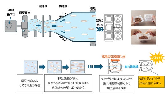 中でも、ふたをきれいに割るために着目したのが、納豆容器の発泡樹脂シート内にある気泡の「配向性」(規則的に同じ方向を向く性質)です。