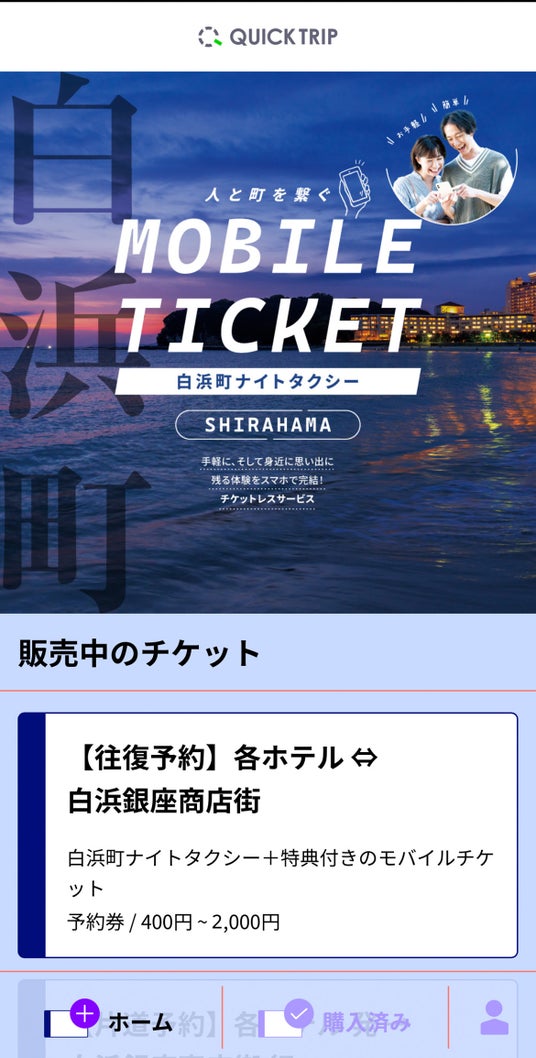 レシップホールディングス株式会社(本社:岐阜県本巣市、代表取締役社長:杉本 眞)の連結子会社レシップ株式会社(本社:岐阜県本巣市、代表取締役社長:北野 元昭、以下:レシップ)は、観光・イベント向けモバイルチケットシステム「QUICK TRIP Ticket」を活用し、2025年11月1日(土)から、和歌山県白浜町で運行を開始する周遊タクシーで利用できるモバイルチケットの取り扱いを開始しました。