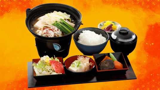 新鮮な牛もつと、野菜の旨味がたっぷり溶け込んだ特製スープが自慢の熱々のお鍋です。もつのプリプリとした食感と、濃厚な旨味が口いっぱいに広がり、冷えた体を芯から温めます。御膳として、ごはんや小鉢、漬物が付き、満足度の高い一食をお楽しみいただけます。単品(950円・税込)でもご注文可能で、+200円でうどんの追加も可能です。