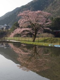 「神龍桜」見ごろ 水田に映る幻想的な姿
