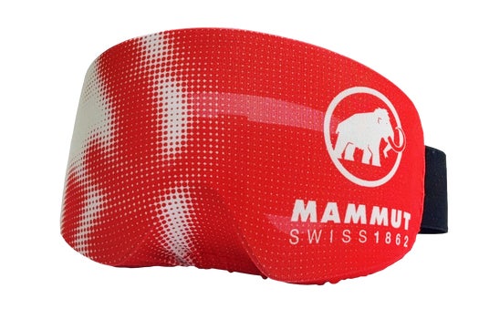 マムートレッドにマンモスロゴが映えるオリジナル ゴーグルカバー。大切なゴーグルを守ります。