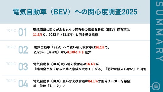 04|電気自動車(BEV)買い替え検討者の84.1%が国内メーカーを希望、第一位は「トヨタ」に